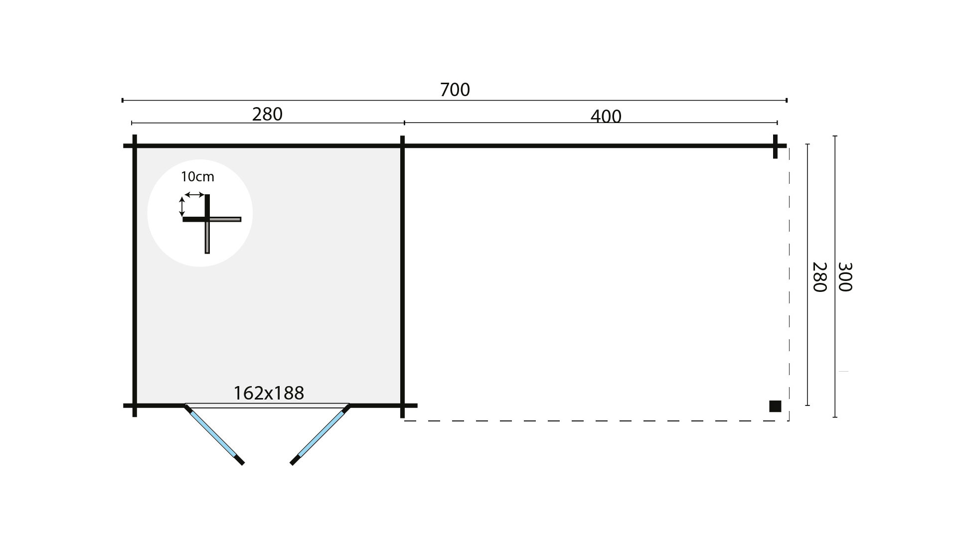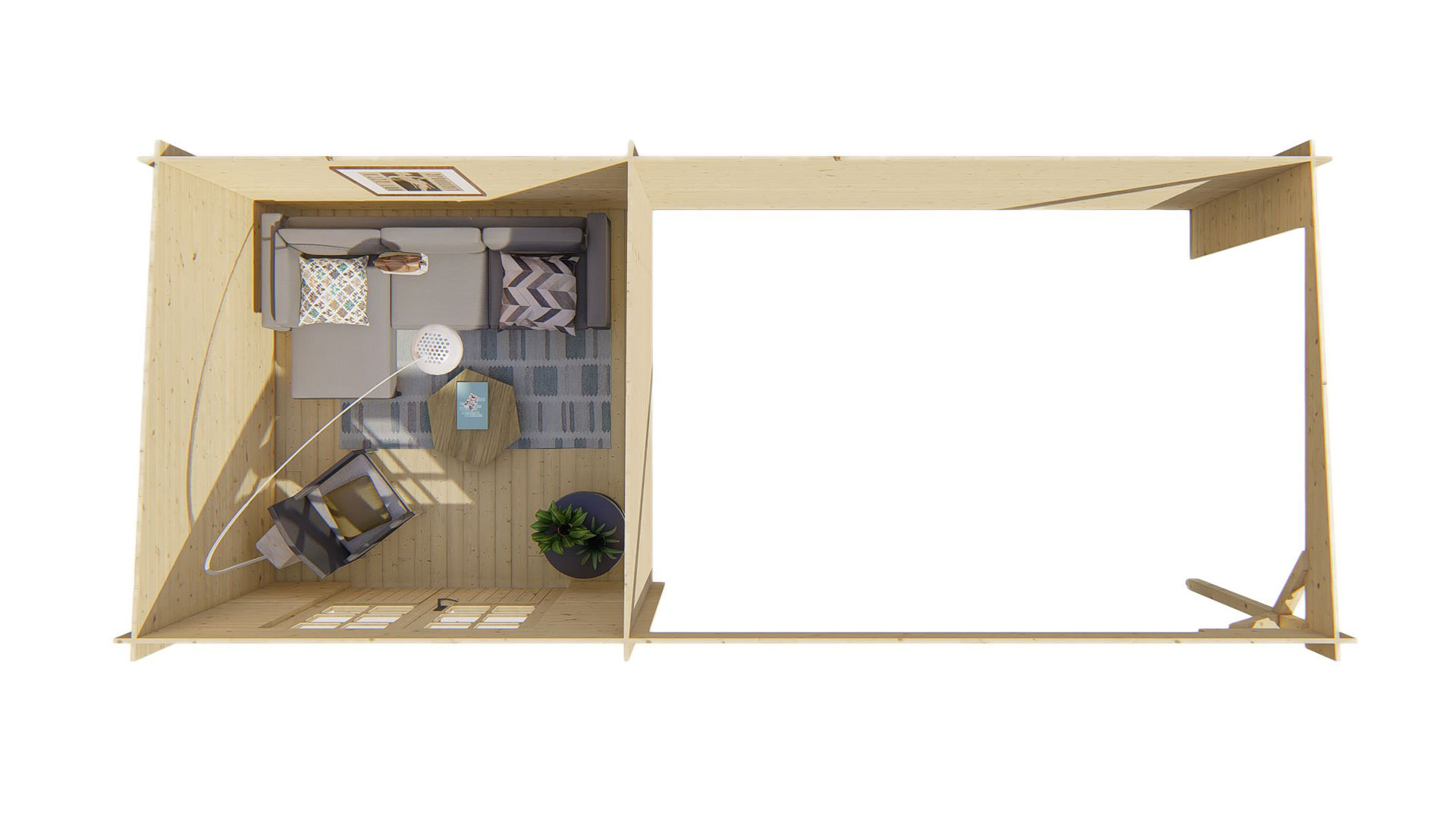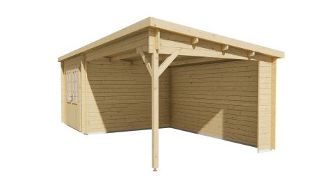 De Tuindeco blokhut Charlotta is gemaakt van hoogwaardig Noord-Europees vuren. Uitgevoerd met een dubbele met losse roedes. De aangebouwde overkapping creëert een heerlijke beschutte buitenplek die perfect dient als sfeervolle loungehoek of als praktische extra opslagruimte.