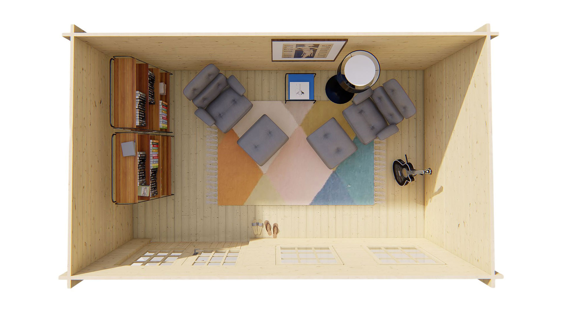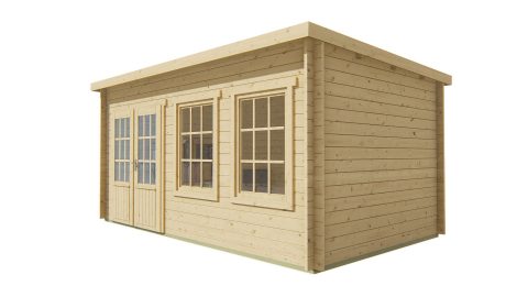 De Tuindeco blokhut Sadie is gemaakt van hoogwaardig Noord-Europees vuren. Uitgevoerd met een dubbele deur en 2 ramen met losse roedes. Dankzij de ruime dubbele entree biedt dit model een zeer toegankelijke doorgang en met de dubbele ramen een optimale lichtinval.
