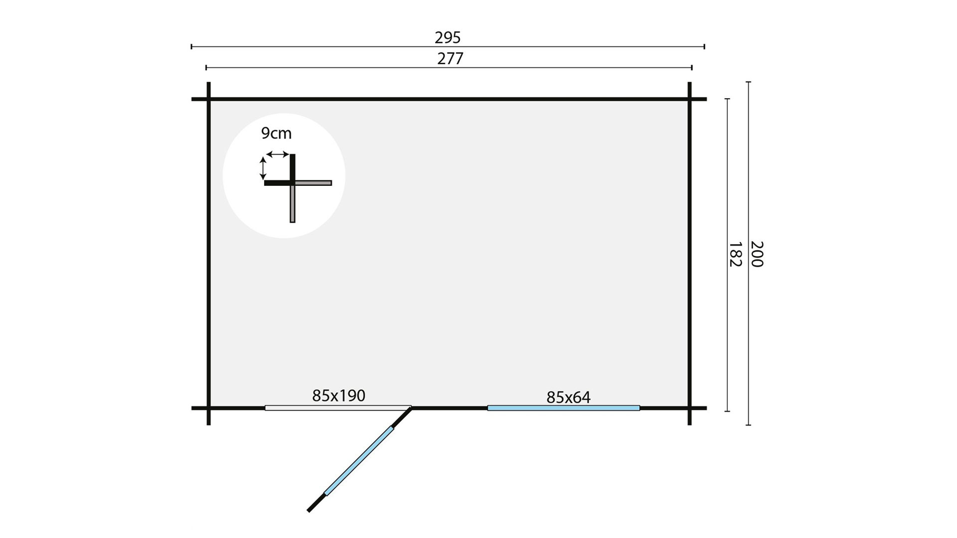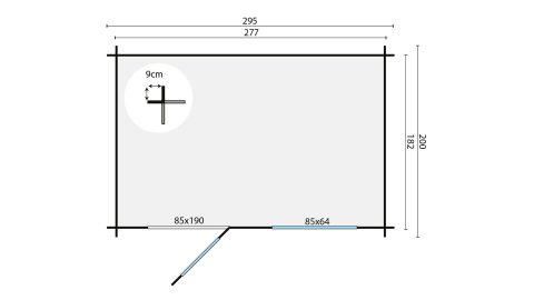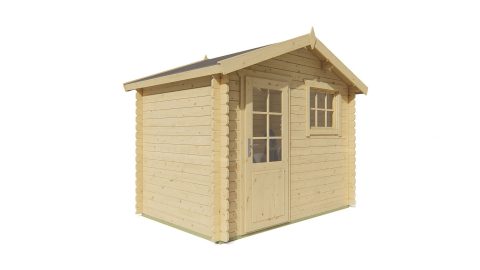 De Tuindeco blokhut Sten is gemaakt van hoogwaardig Noord-Europees vuren. Uitgevoerd met een enkele deur en uitzetraam met vaste roedes. De positie van de deur en raam aan de voorzijde kunnen zowel links als rechts van elkaar gemonteerd worden.